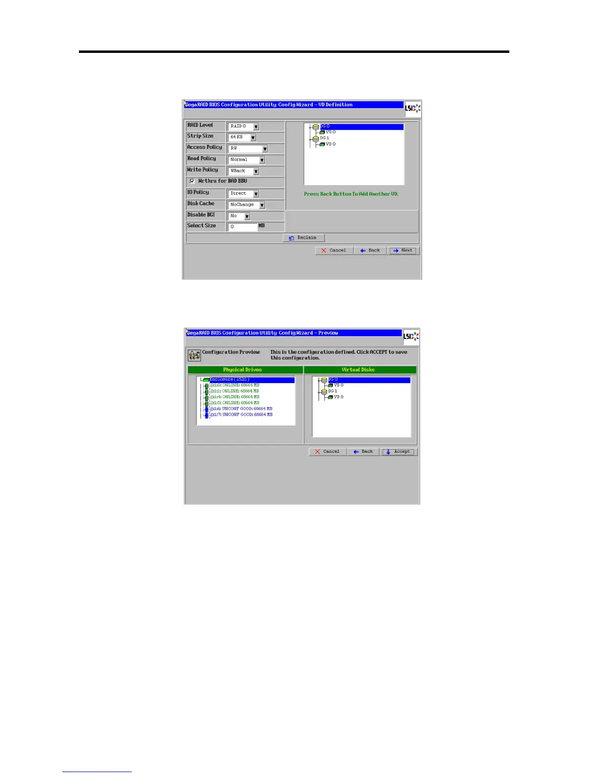 10. On the "Preview" screen, make sure the VD is defined correctly, then select [Accept] at