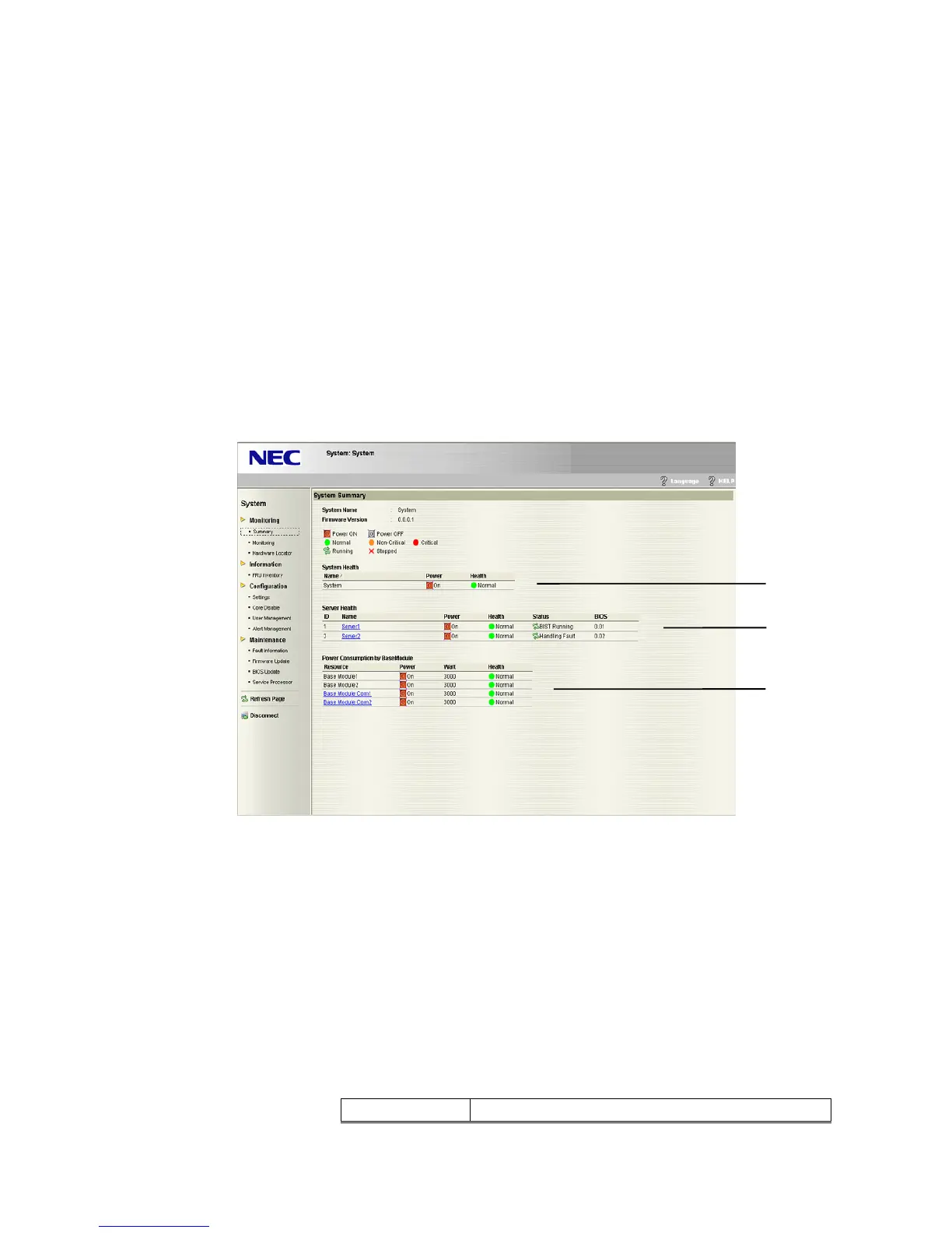 The status of system, server and resource can be checked from Summary. Display information is