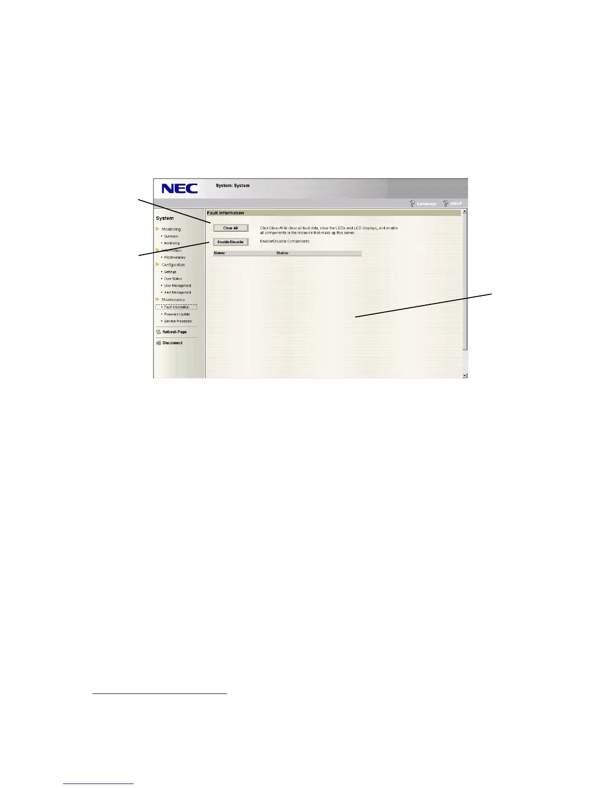 Fault Information is displayed by selecting “Fault Information” from the menu on the left side of