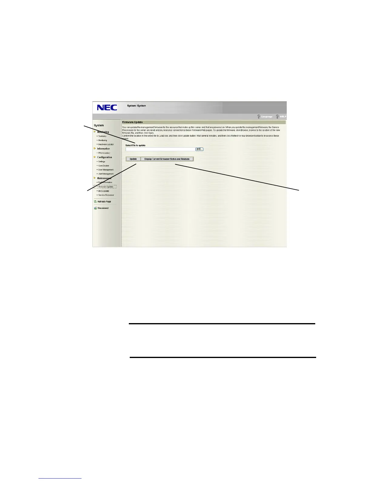 (2) Clicking “Update” enables to forward the file of Management Firmware to system Web