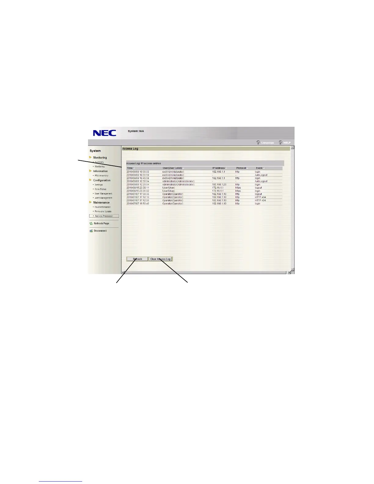 (4) Clicking “Download Web Access Log” enables to download and display the access log