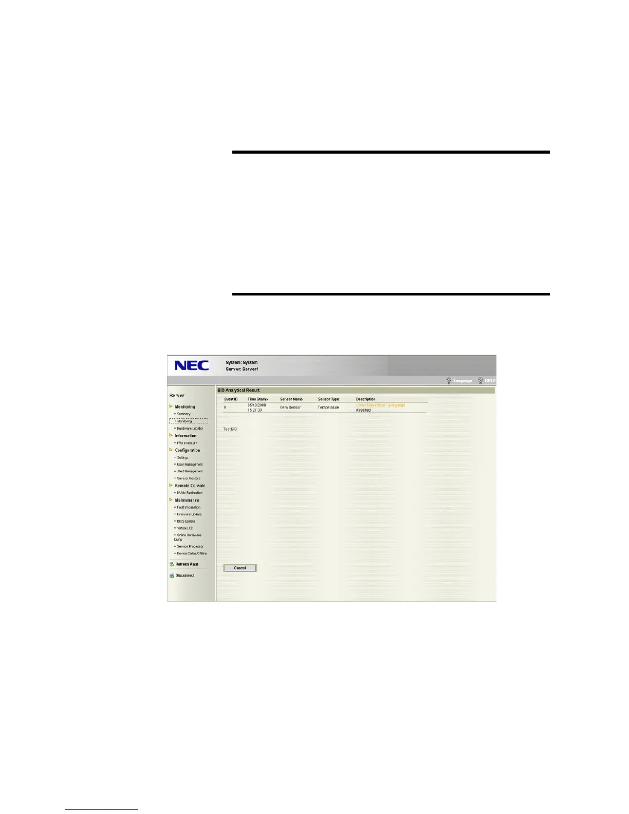 BID : BID button (display only when hardware log exists).