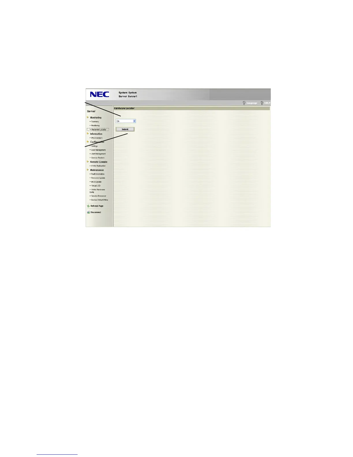 Hardware Locator is displayed by selecting “Hardware Locator” from the menu on the left side