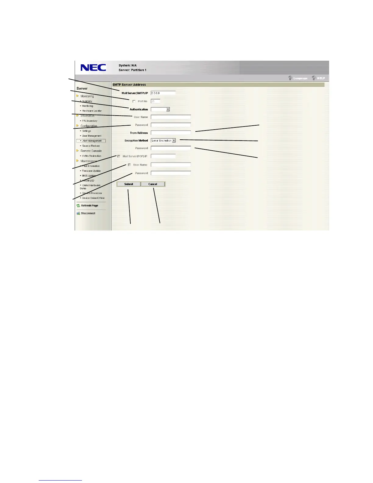 (14) IP address of send mail server can be displayed/changed in “Mail Server (SMTP)IP.”