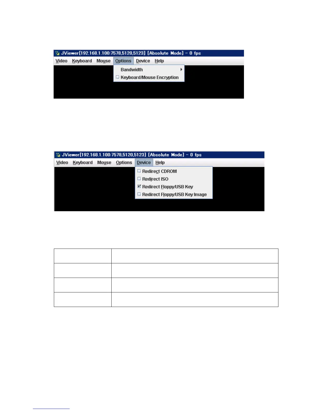Do not use the “Redirect Floppy/USB Key” at the same time.
