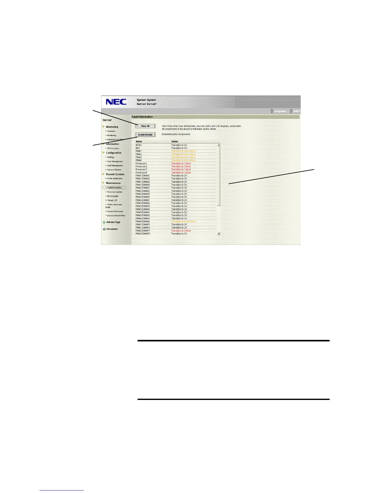 Fault information of hardware unit is displayed in Fault Information.