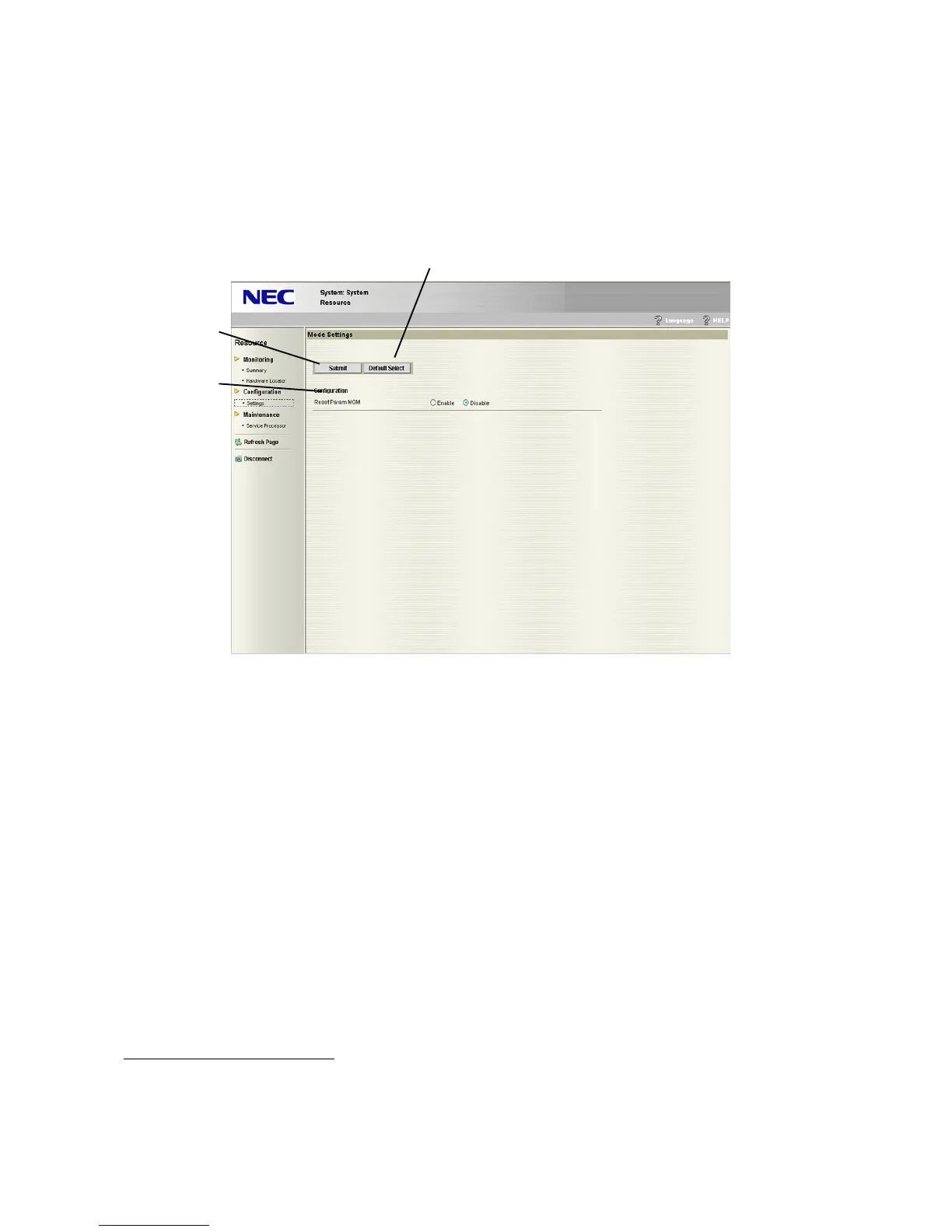 (2) Clicking “Default Select” enables to restore the operation mode status to the default