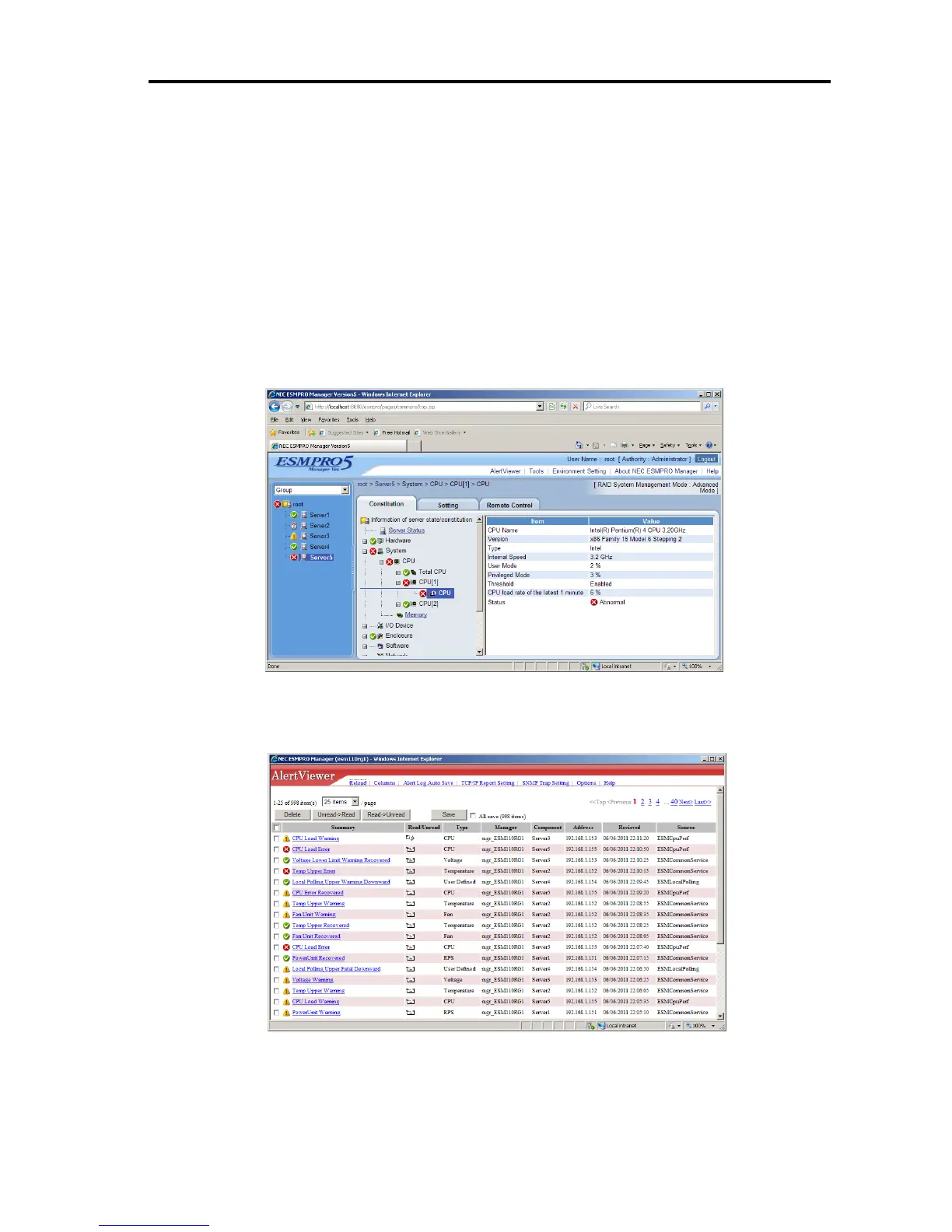 Especially take note on whether any alert is reported to NEC ESMPRO Manager on the