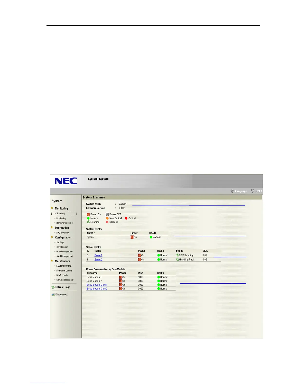 1. On the System WEB Console, click “Summary” in “Monitoring”, listed on the left menu.