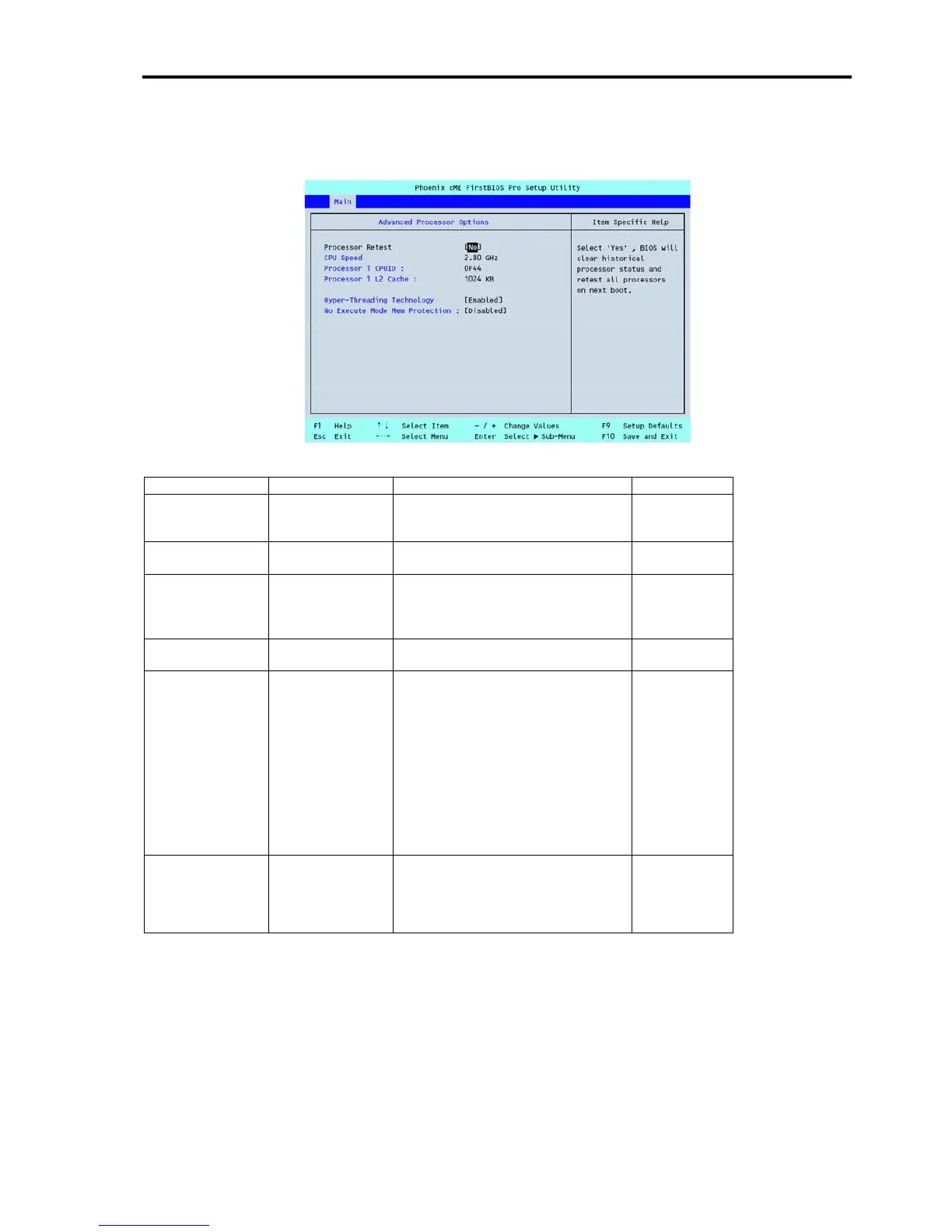 If you select "Advanced Processor Options" on the Main menu, the screen shown below appears.