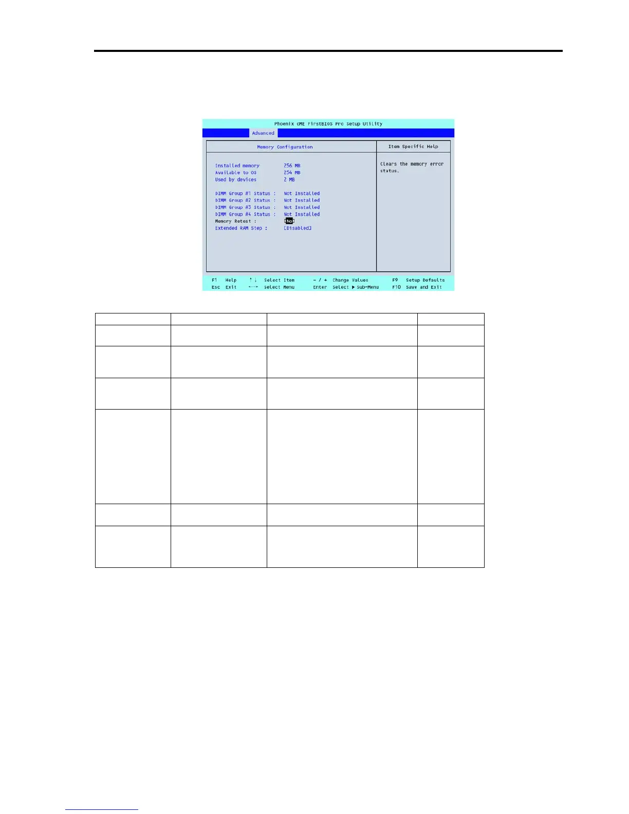 The following screen appears if you select "Memory Configuration" on the Advanced menu.