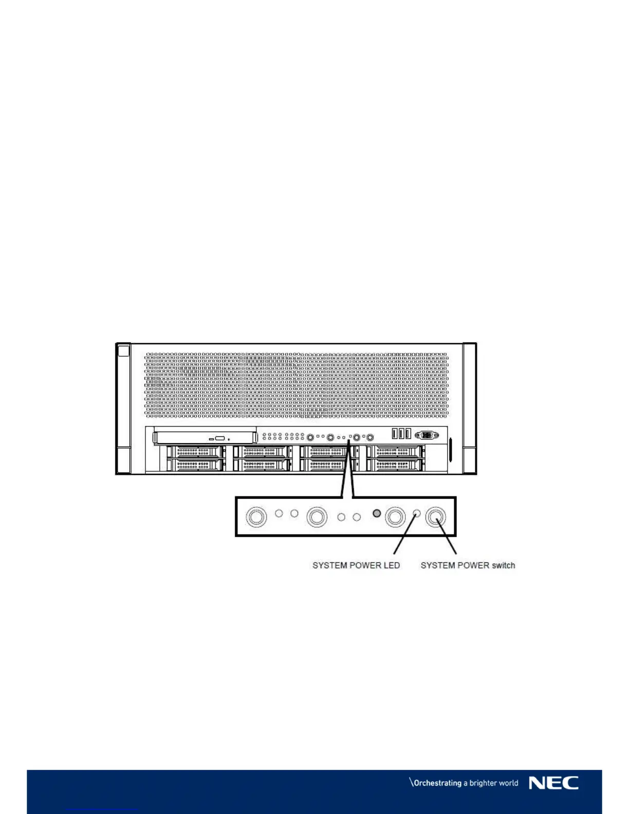 Pressing the SYSTEM POWER Switch at the front of the server turns on the server.