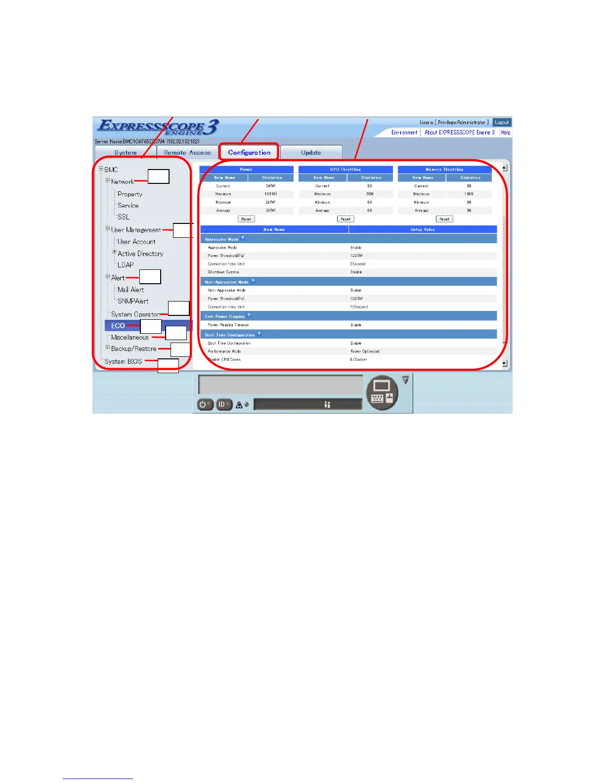A. The configuration tab. BMC supported functions are displayed.
