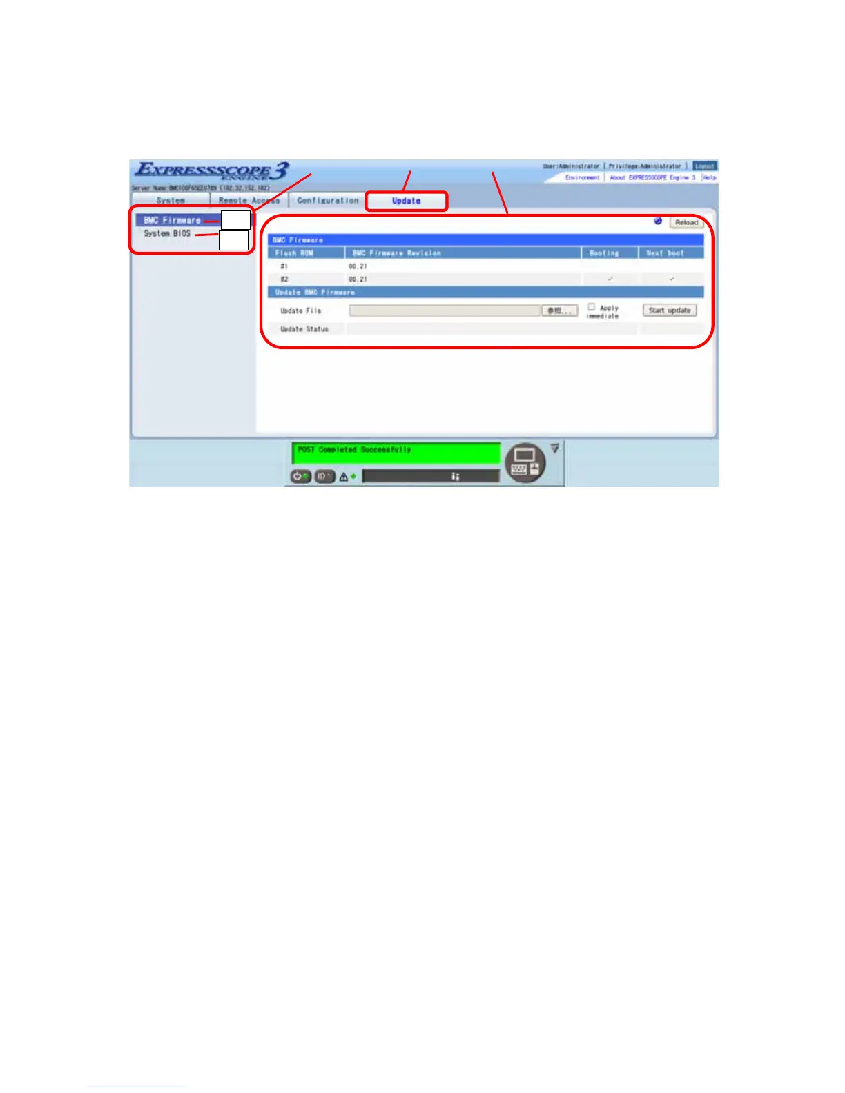 C. Information selected by B is displayed. The screen of "BMC Firmware" is displayed in the