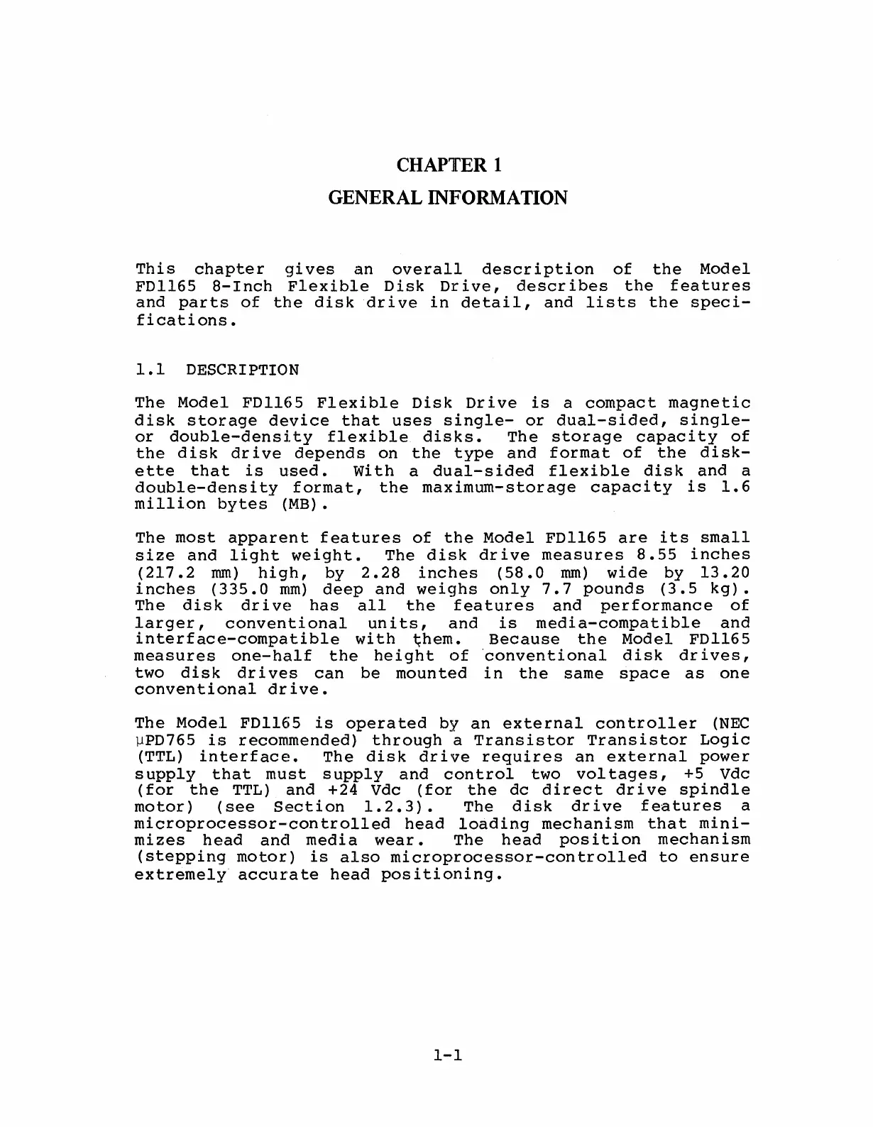 NEC FD1165 - Chapter 1 General Information; 1.1 Description