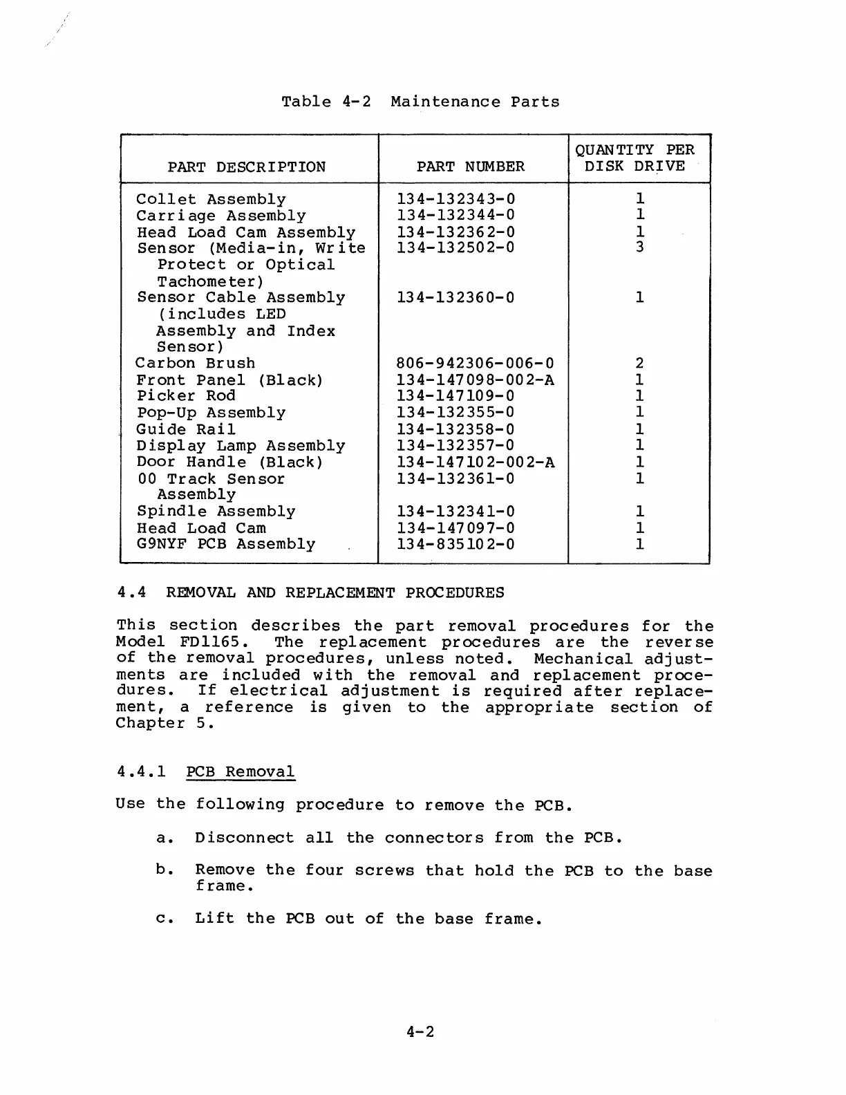 NEC FD1165 - 4.4 Removal and Replacement Procedures