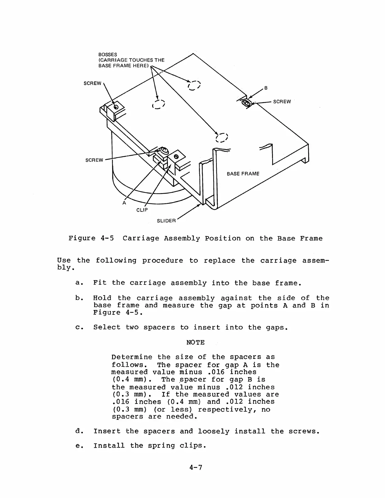 NEC FD1165 - Carriage Assembly Position on the Base Frame