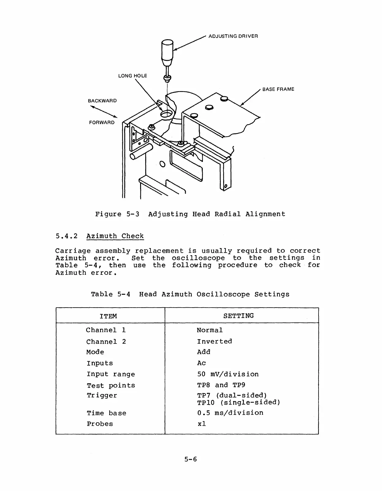 NEC FD1165 - Azimuth Check; Adjusting Head Radial Alignment; Head Azimuth Oscilloscope Settings