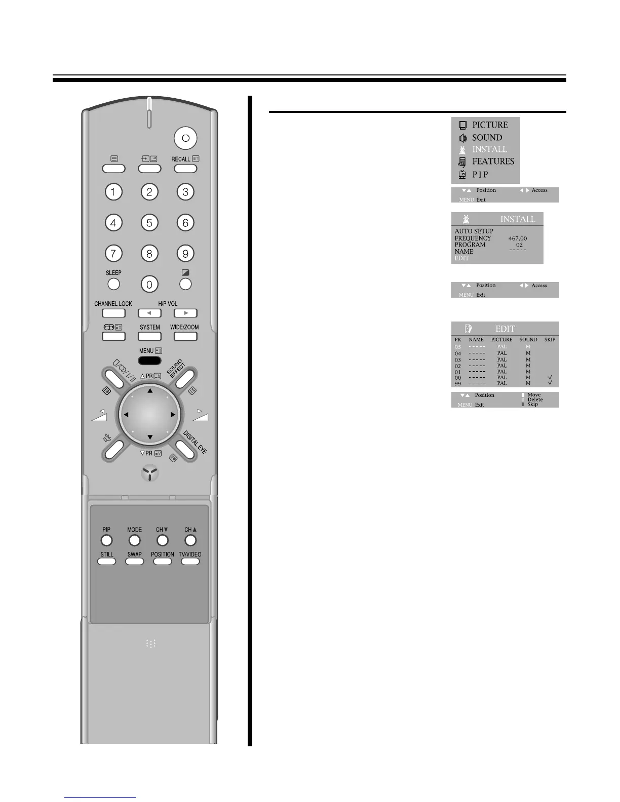 buttons and change the picture (ex. PAL, SECAM, NTSC, ..) with