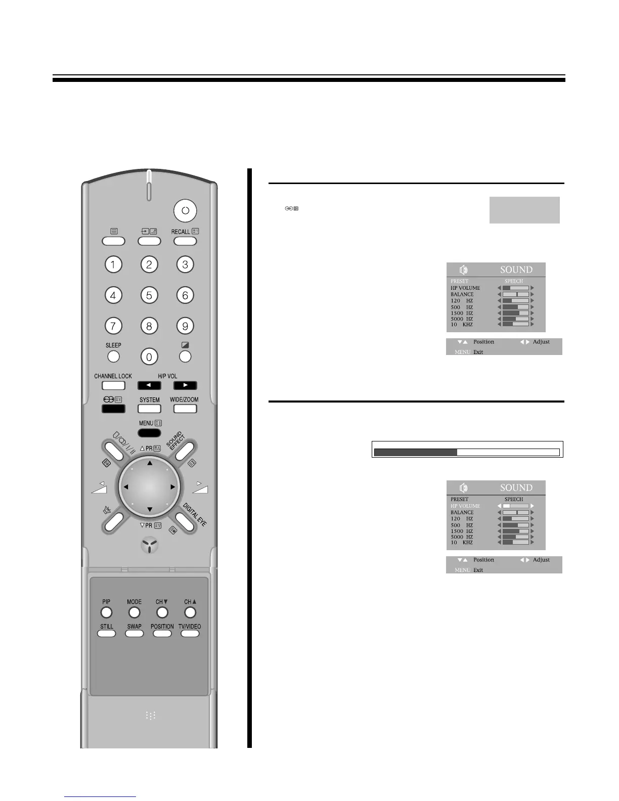 P VOLB button in the remote control to adjust