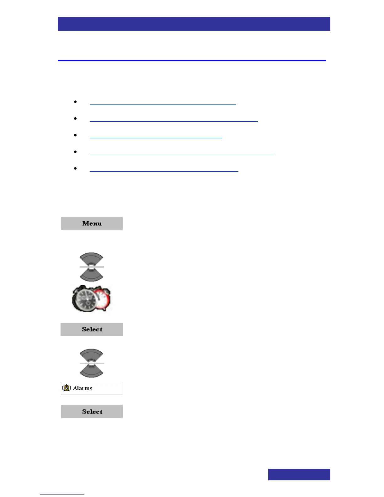Accessing the Alarms menu