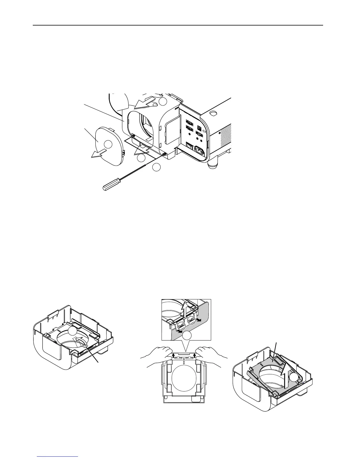 w Loosen and remove the 2 screws on the lens hood using the hexagonal driver.