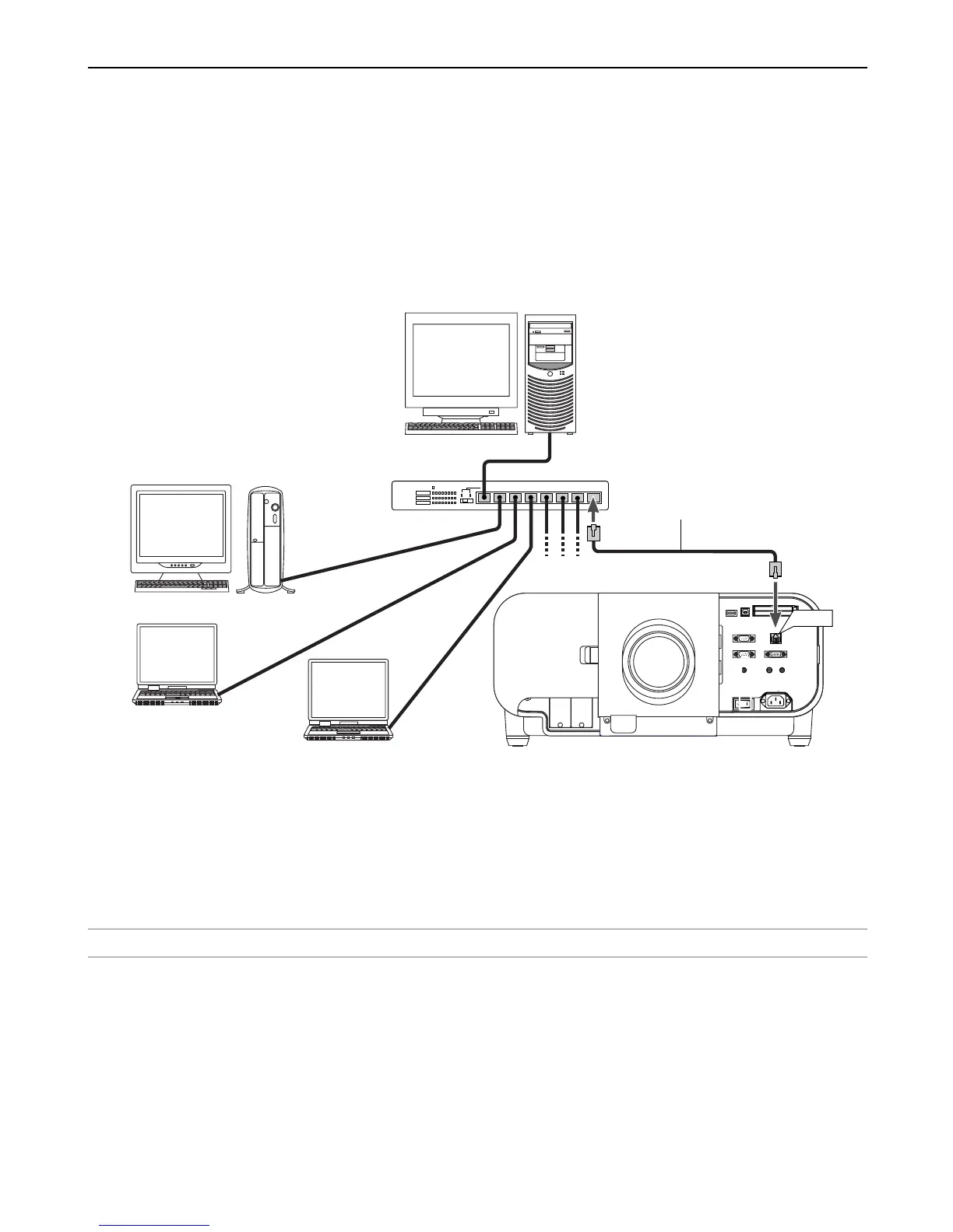 With the LAN connection, you can control the projector over the network using a computer to switch the unit on/off, select the input and others.