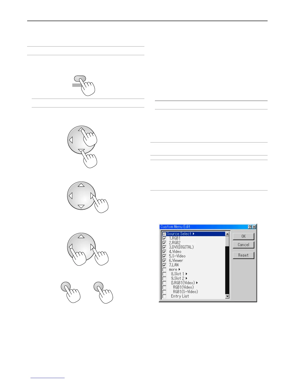 trol or the projector cabinet to select a submenu or item.