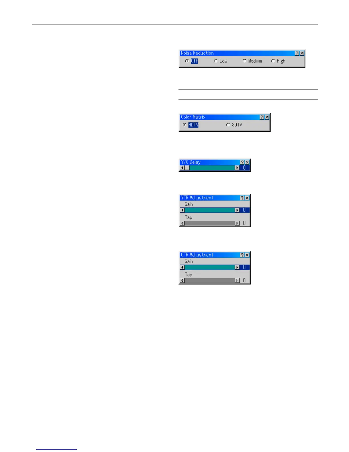 Adjusts Y/C delay level.