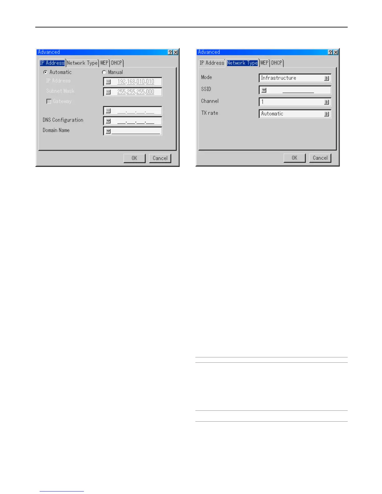 Set this option when selecting [802.11 Ad Hoc] or [Ad Hoc] in