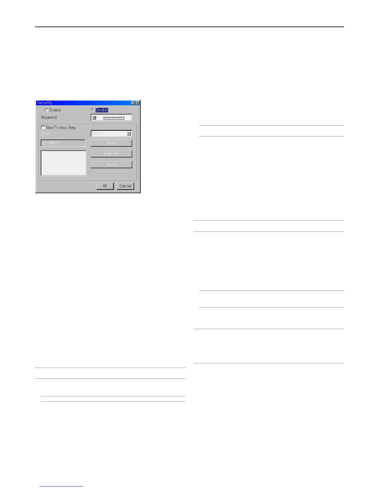 NOTE: To use a PC card as a protect key, you must also set up a keyword. Please