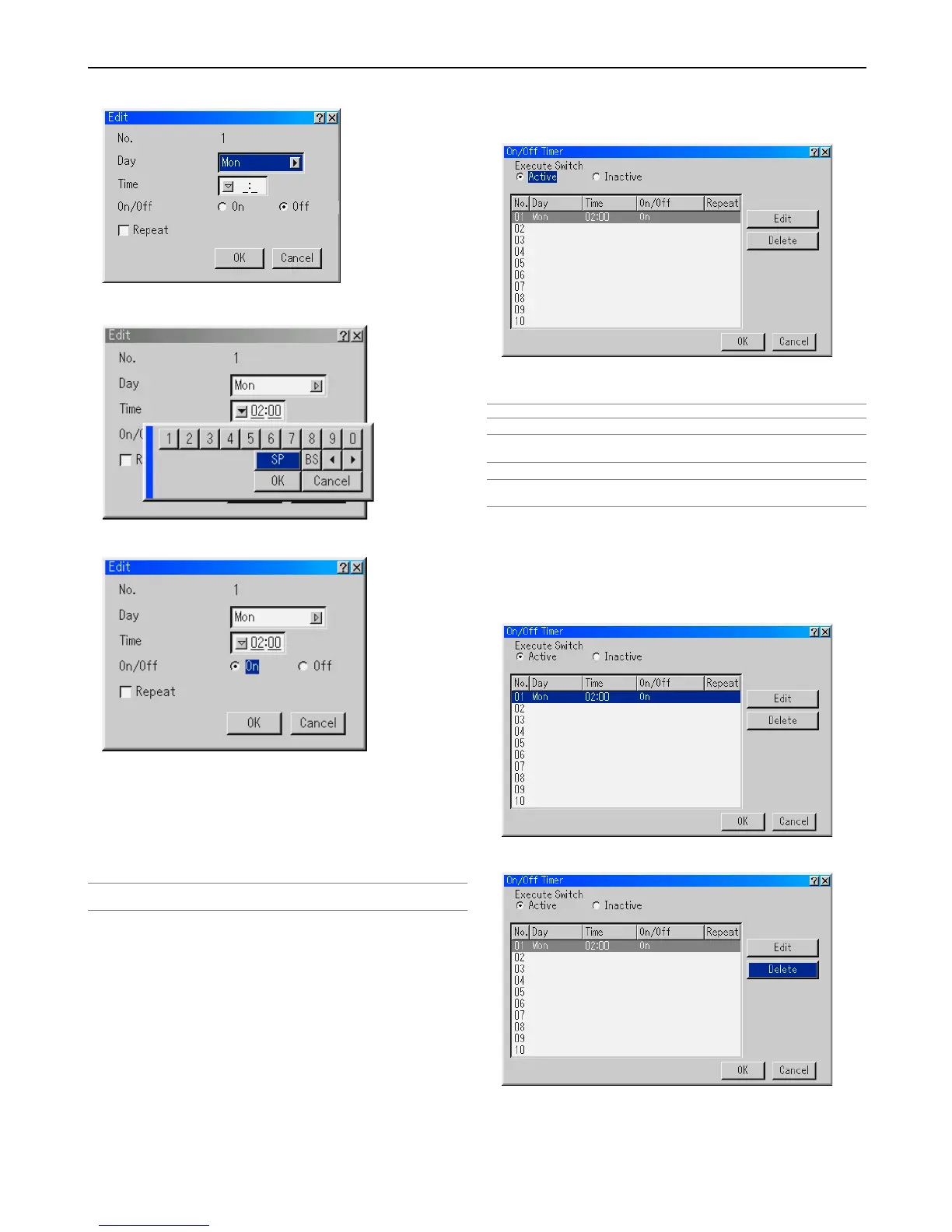 Deleting the On or Off Timer settings