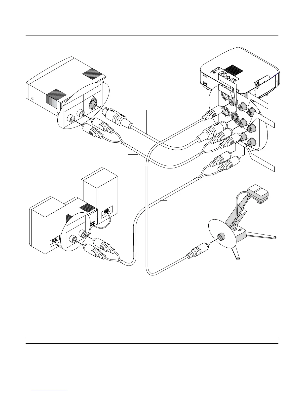Use common RCA cables (not provided) to connect your VCR, laser disc player or document camera to your projector.