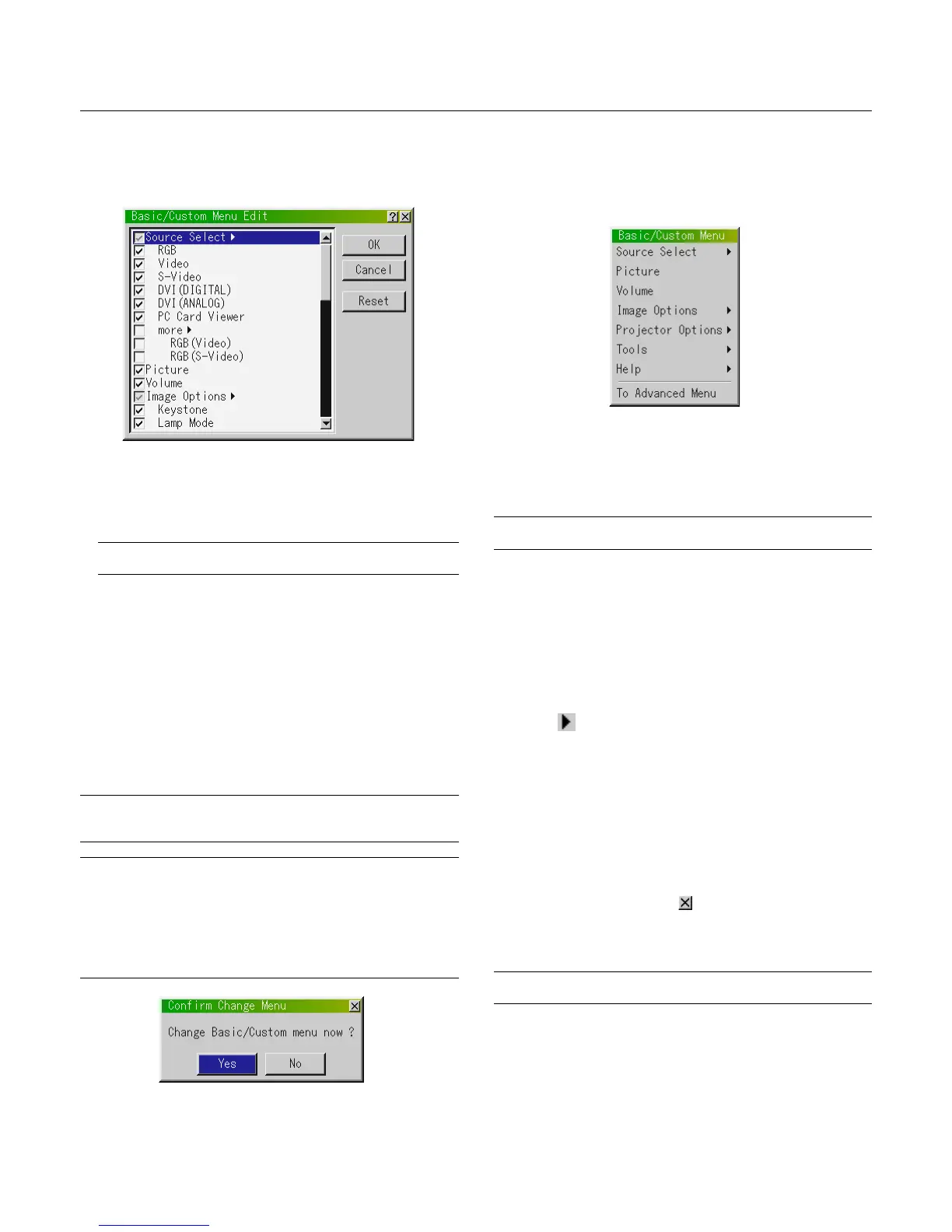 Menu” selection. To display the previously tailored Basic/Custom Menu, select
