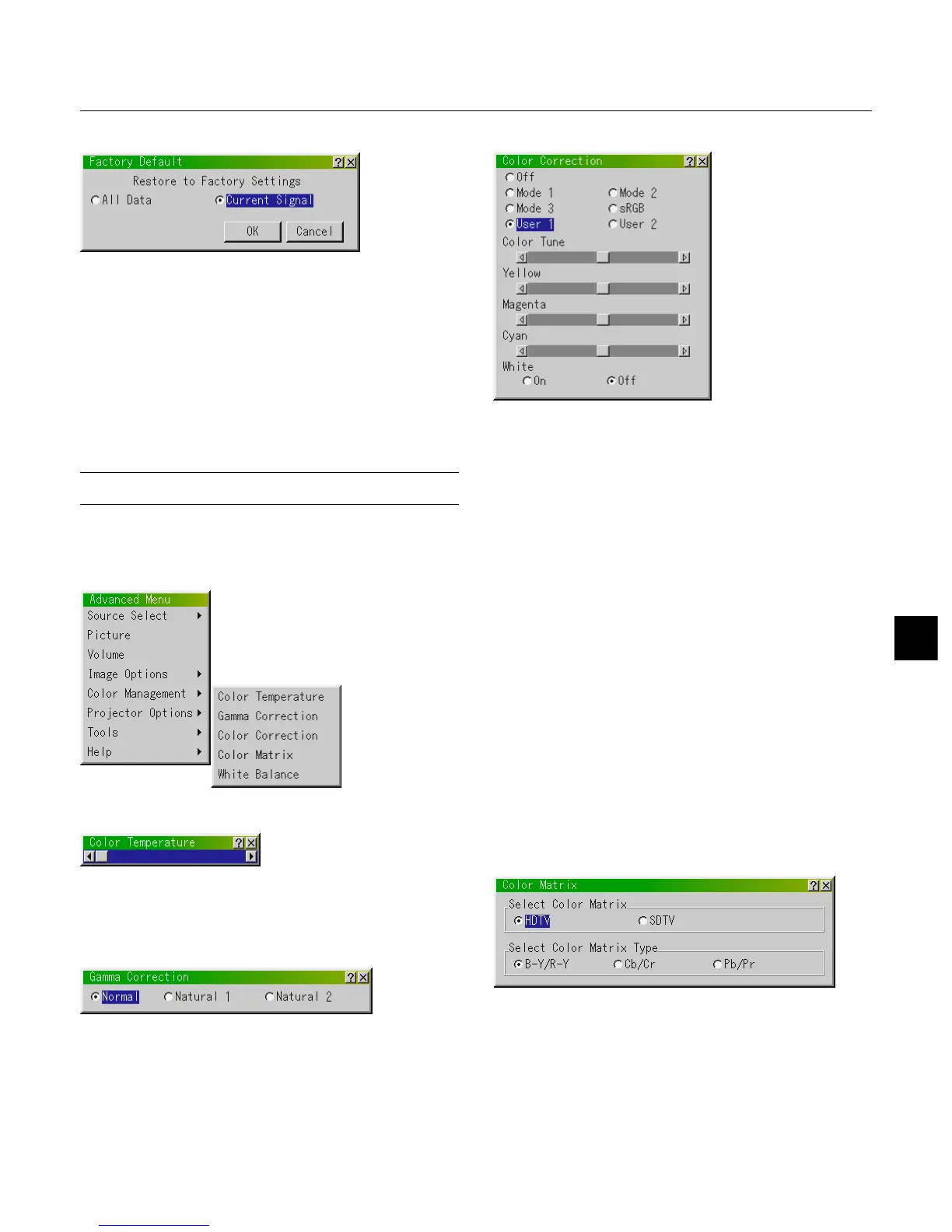 Color Matrix (available for component video and HDTV signal