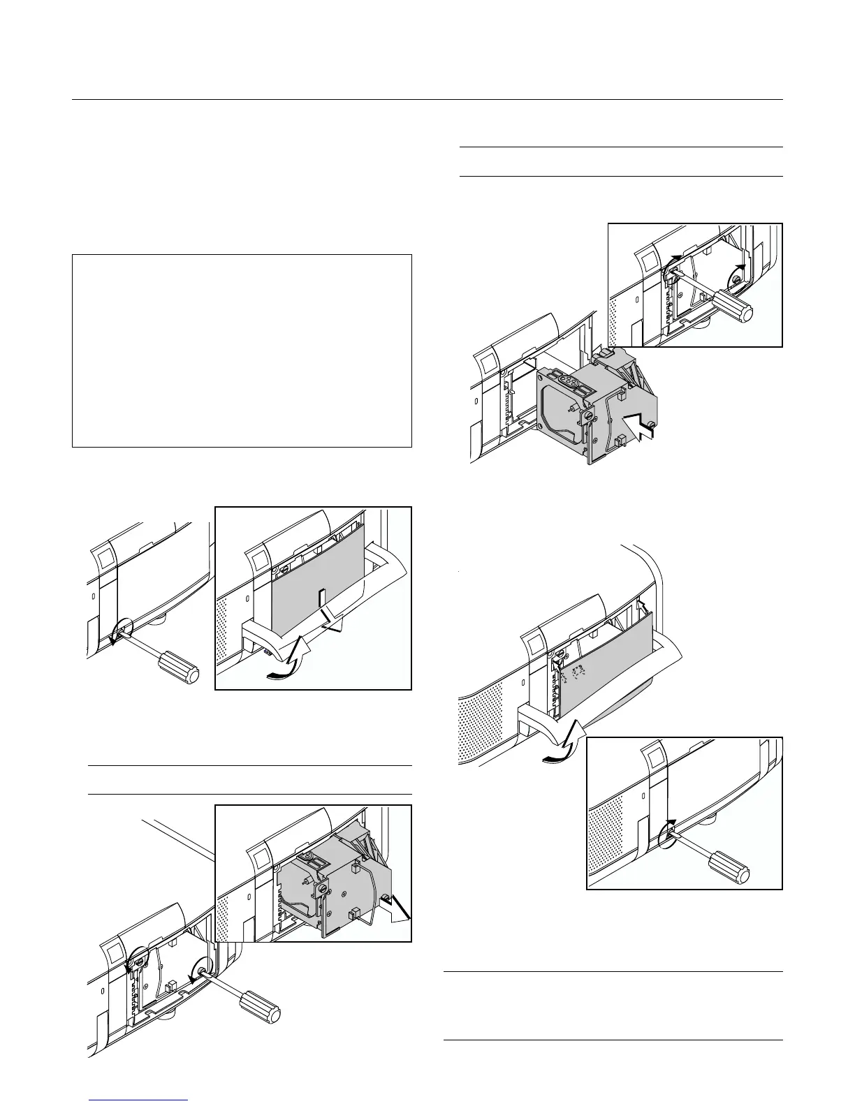 • DO NOT REMOVE ANY SCREWS except the lamp cover screw and two
