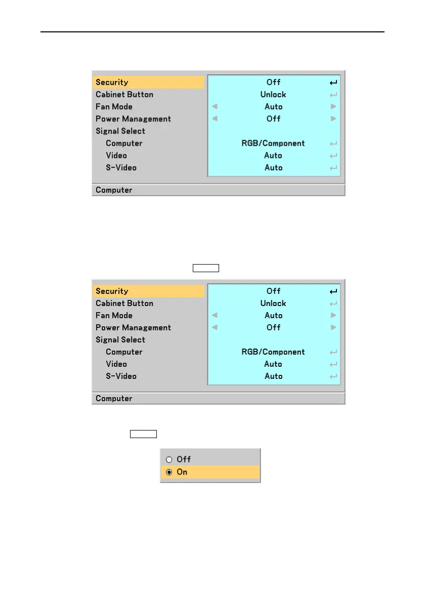 [Security] and press the ENTER button.