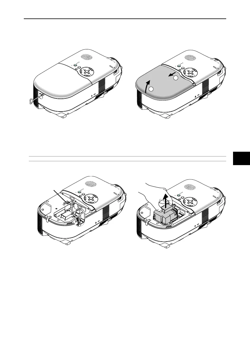 1. Loosen the lamp cover screw until the screwdriver goes into a freewheeling condition and remove the lamp