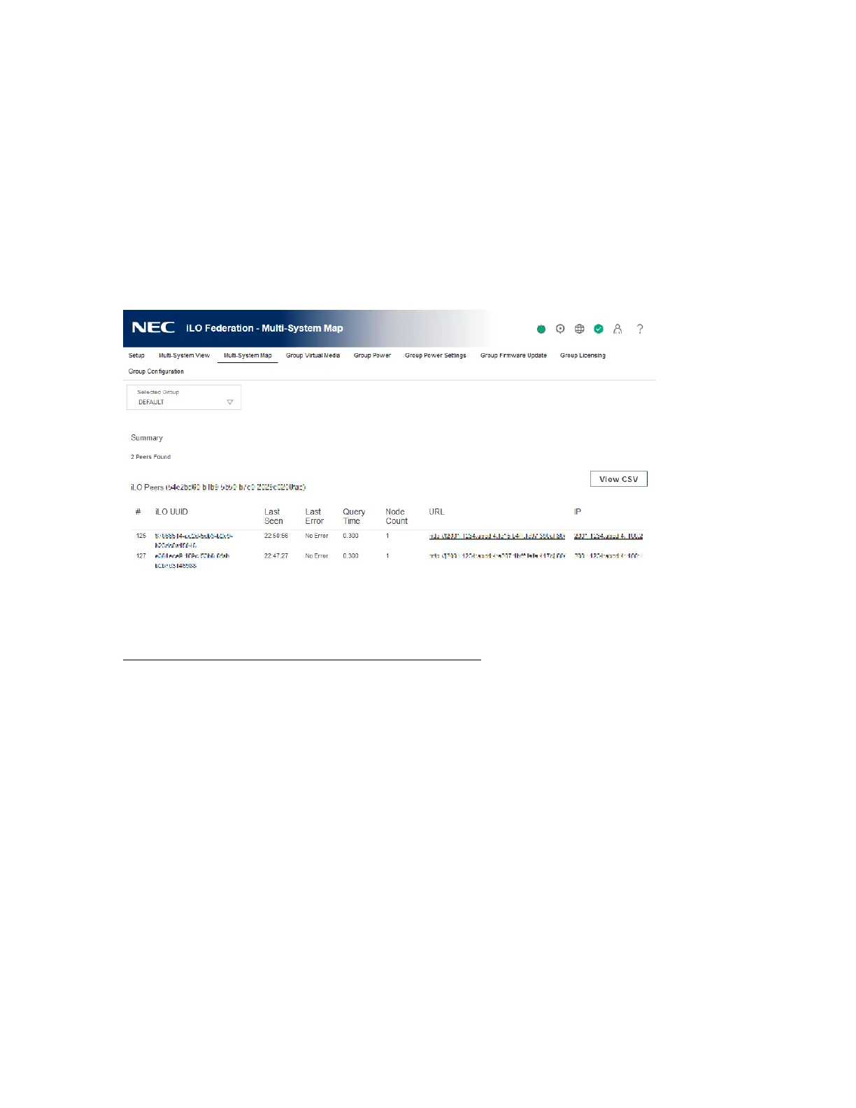 • URL—The URL for starting the iLO web interface for the listed peer.