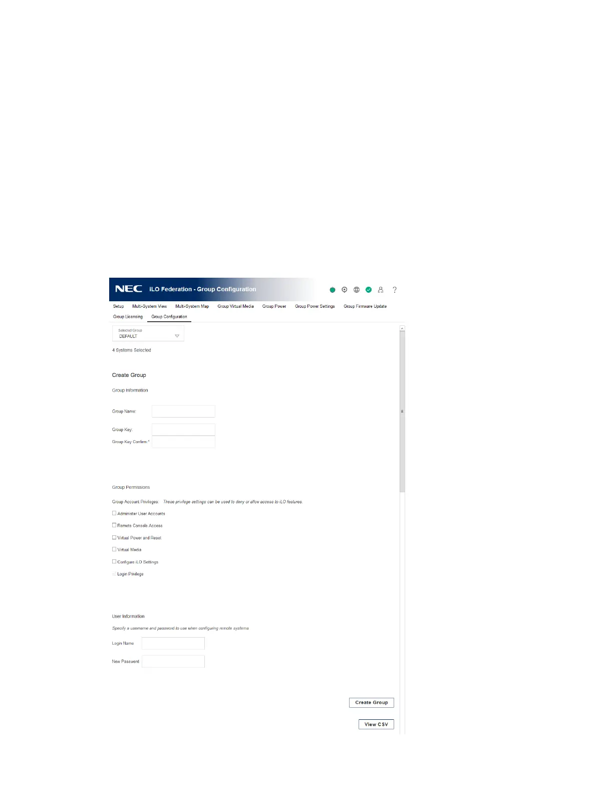 1. Click iLO Federation in the navigation tree, and then click the Group Configuration tab.
