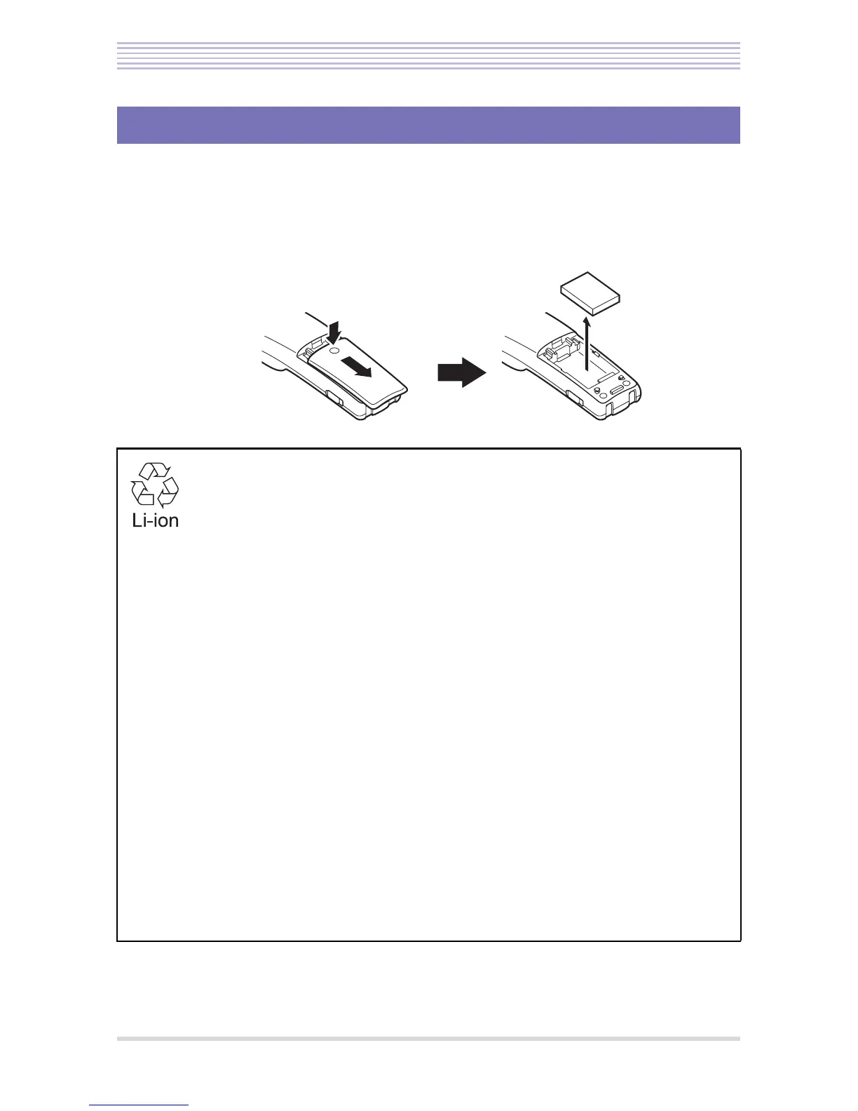 • Take proper precautions when discarding the battery. It may be considered hazardous