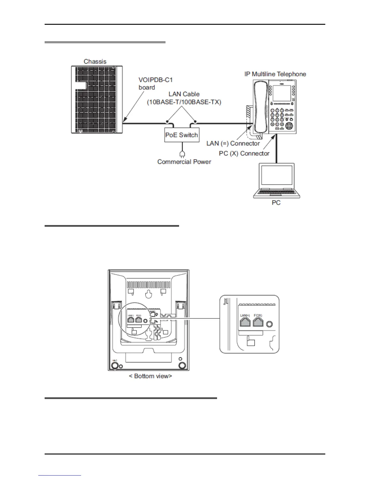 3. The Multiline IP Telephones have a Switching Hub to connect a PC to the LAN network. Connect the