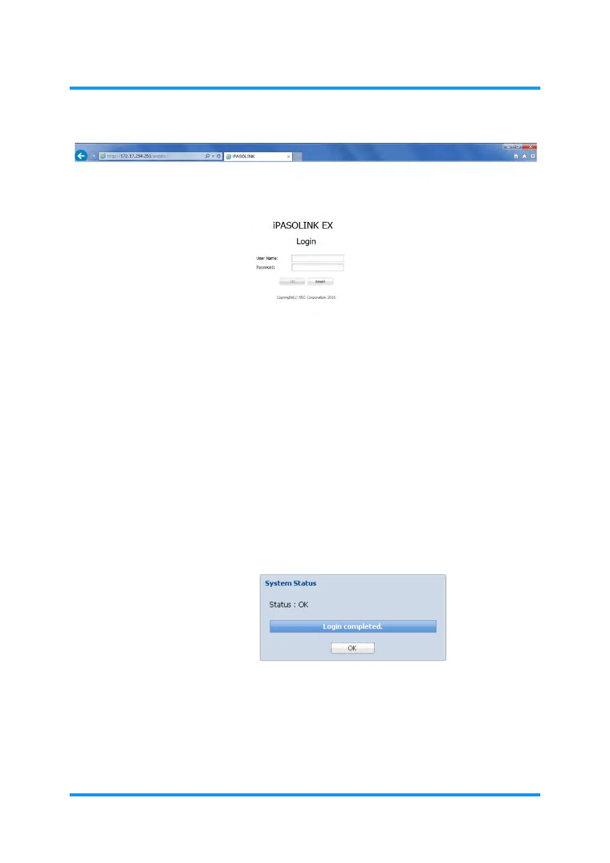 Click the OK button blow the Login fields. System Status indicator appears.