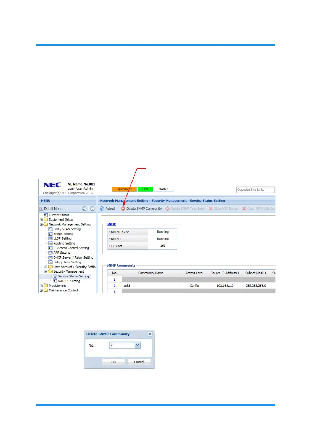 4. The Delete SNMP Community option window appears. Select an SNMP