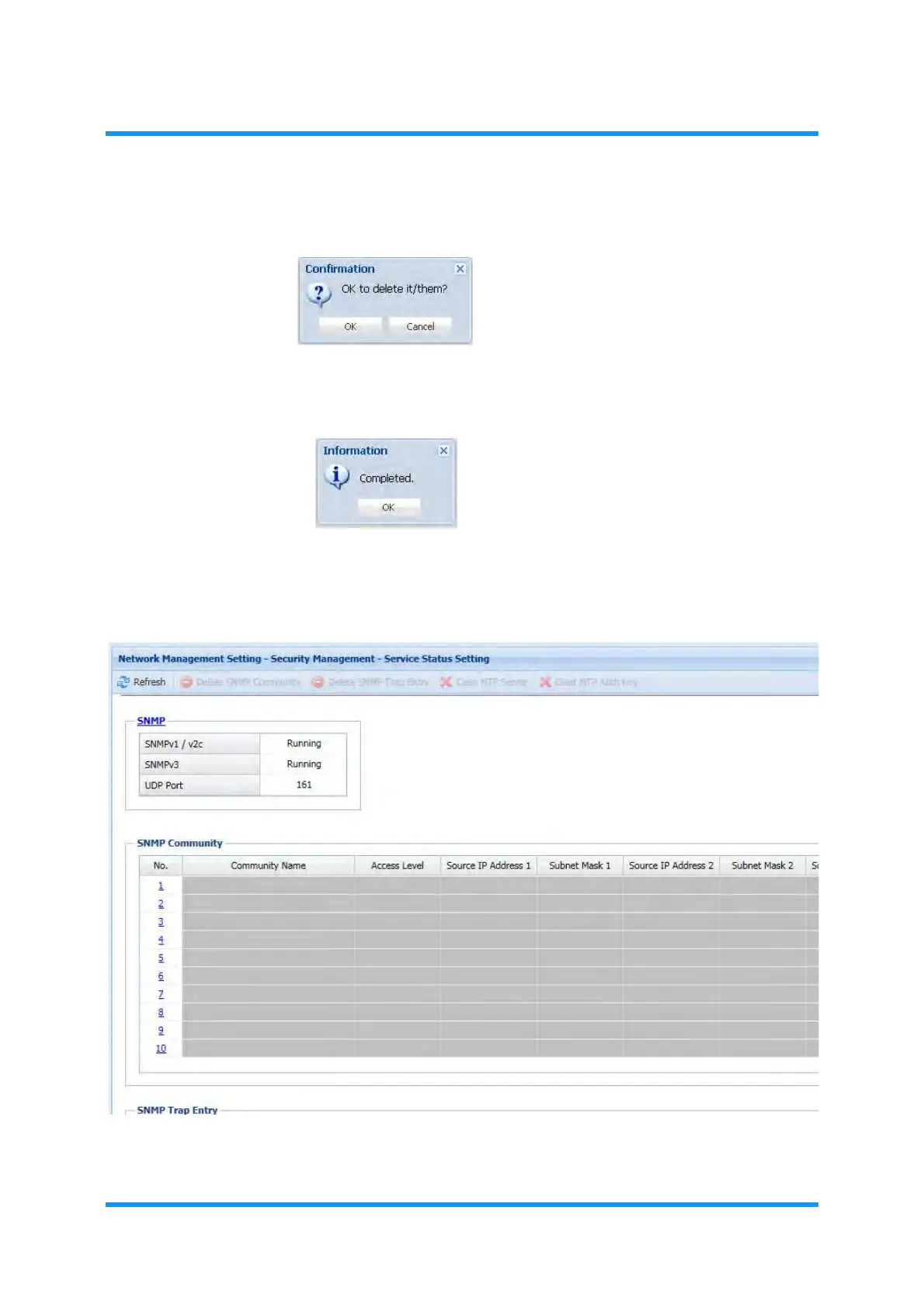 Figure 3-16 Service Status Setting Window (SNMP Community)