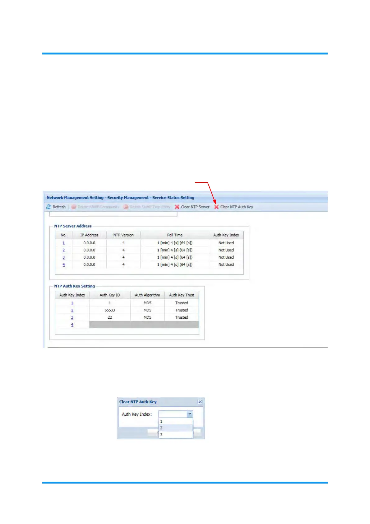 4. Clear NTP Auth Key option window appears. Select an index number of