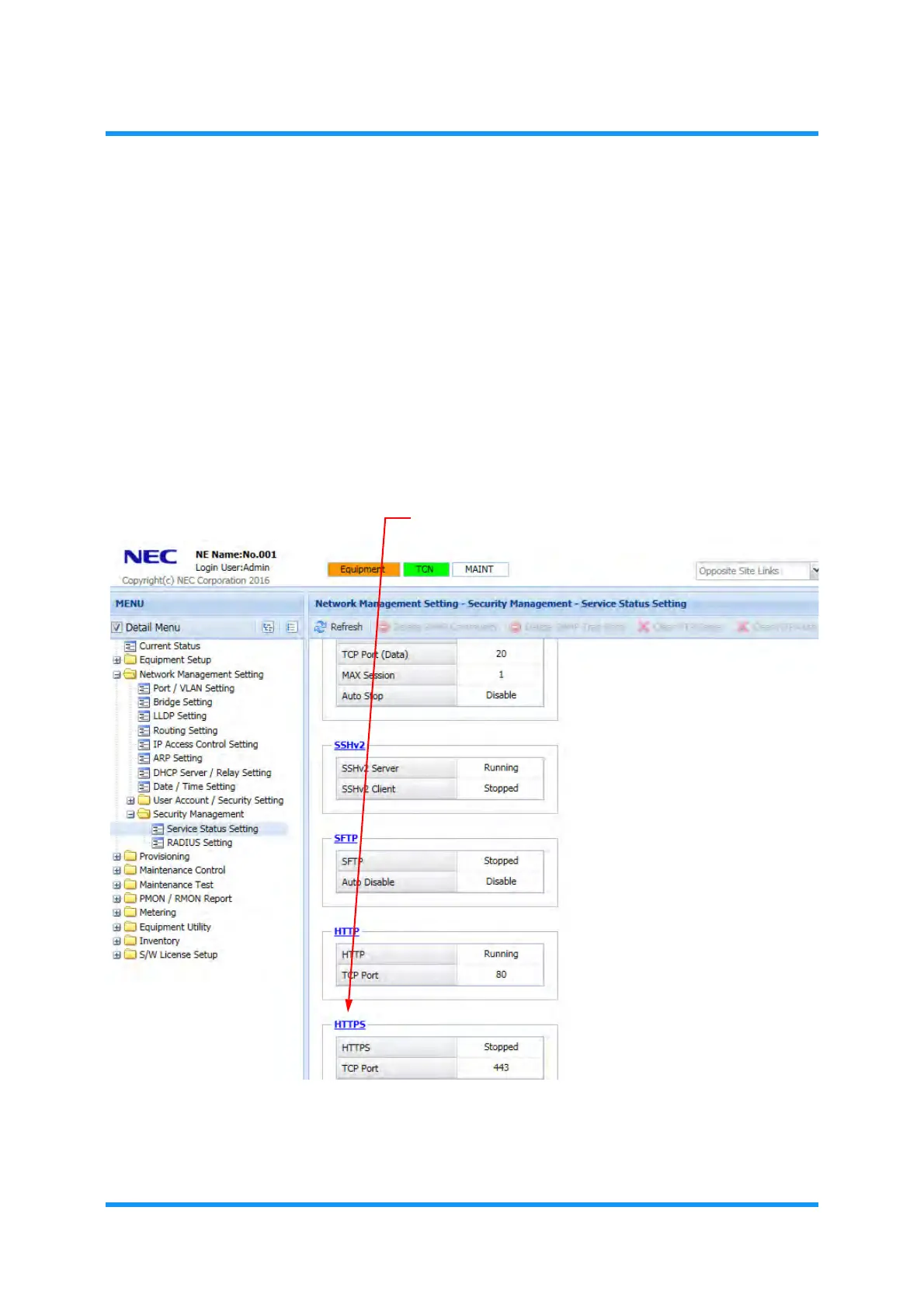 Figure 3-73 Service Status Setting Window (HTTPS)
