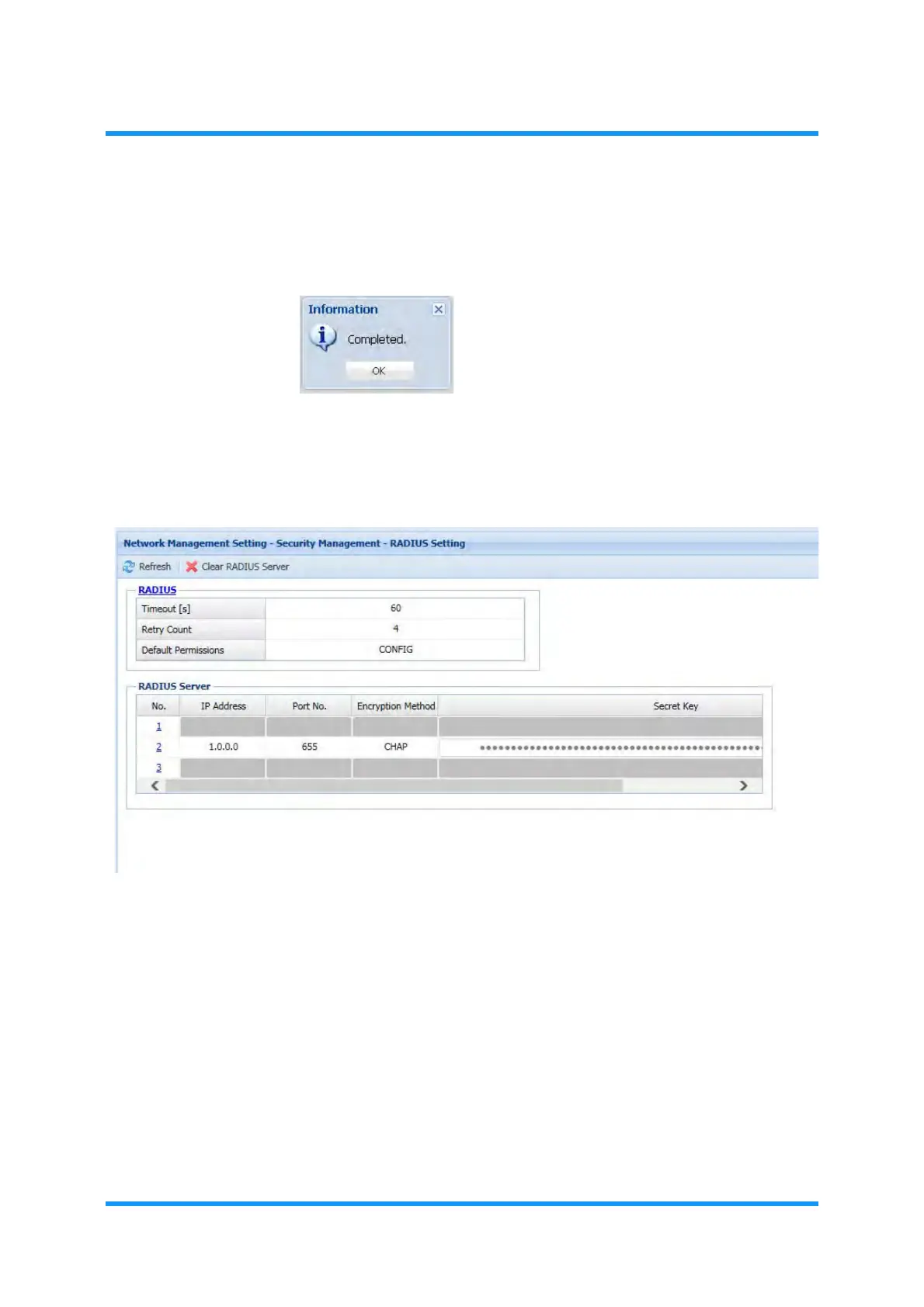 9. The RADIUS Setting window updates the information. Verify the displayed