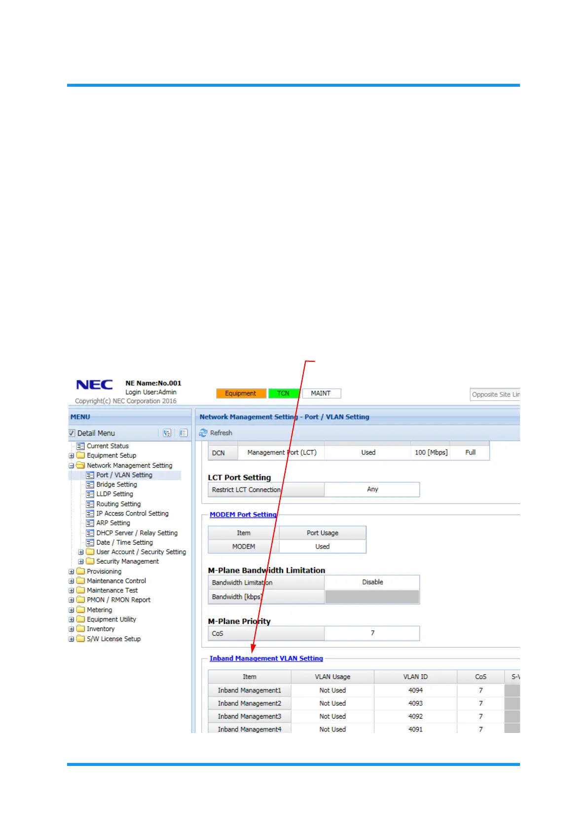 5.2.3 Inband Management VLAN Setting
