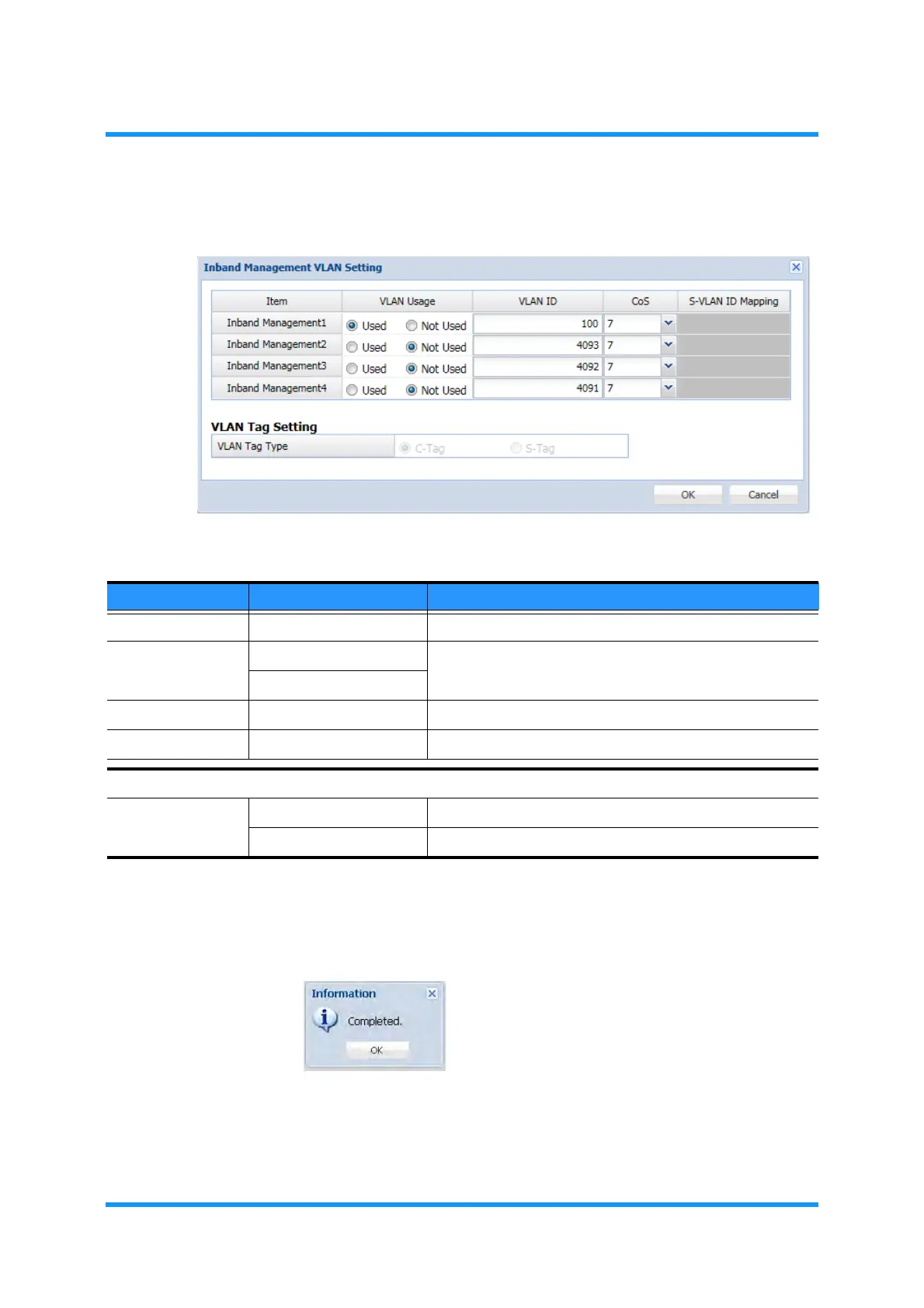 Figure 5-12 Inband Management VLAN Setting Option Window